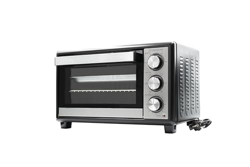 BEHOME Four Électrique 30L, Four de Table Ventilé, Température 230°, 60 min, Four électrique de table avec grill, plaque de cuisson et grill inclus, antiadhésif, double vitrage