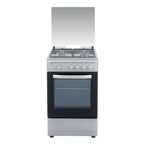Svan Cuisinière Gaz Butane, Cuisinière Indépendante, 4 Zones de Cuisson, Four 43L, Inox, SKG4501X. Commande Manuelle, 2 Programmes de Cuisson, Porte Double Vitrage, Couvercle Abattant