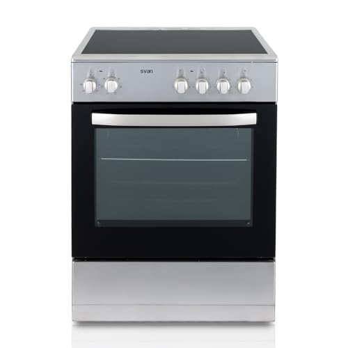 Svan Cuisinière Électrique, Vitrocéramique 4 Zones de Cuisson, Four 56 L, Inox, SKV4600X. Contrôle Manuel, 6 Programmes de Cuisson, Double Vitrage Porte, Classe Énergétique A