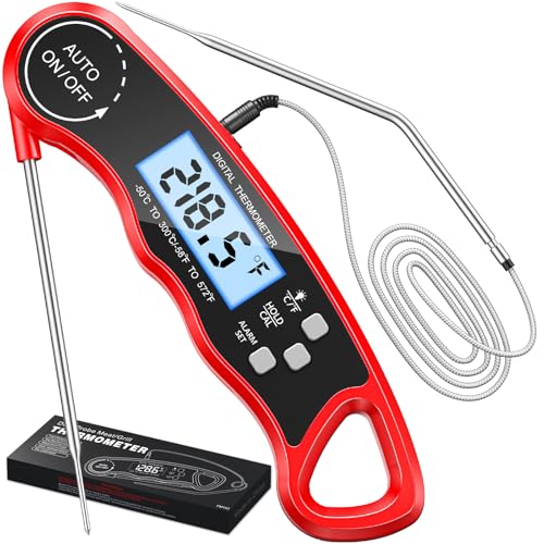 Babacom Thermometre Cuisine avec Double Sondes Pliables, 3s Lecture Instantané Thermomètre Digital, Rétroéclairage LCD & Calibration, Thermometre Cuisson pour Four, Cuisinière, BBQ, Fumoir & Lait