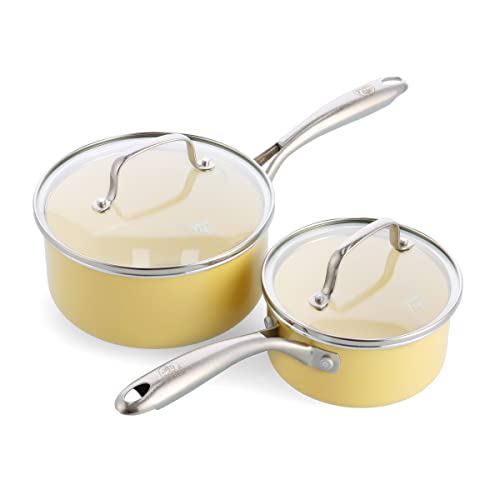GreenLife Artizan Set de Casseroles 14cm/1L & 18cm/2L en Antiadhésive Céramique Saine, Sans PFAS, Poignée en Acier Inoxydable, Convient avec l'induction, Va au Lave-Vaisselle & au Four, Jaune