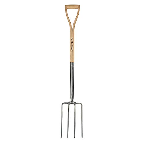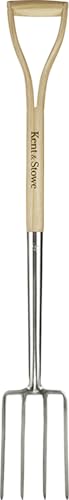 Kent & Stowe fourche à bêcher – Fourche de jardin en acier inoxydable pour bêcher, fourche à foin avec manche en frêne, longueur : 104 cm