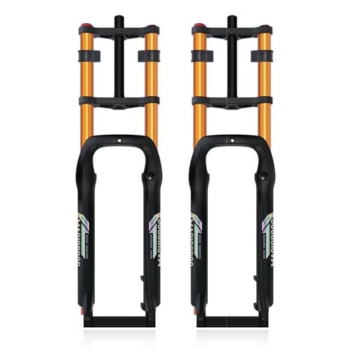 20x4.0 '' 135mm Fat Fork Snow Bike Suspension Fourche Double Shoulder Air Fork Frein à Disque QR Bicycle Fourche Avant Rebond Réglable Débattement, Gold, 20