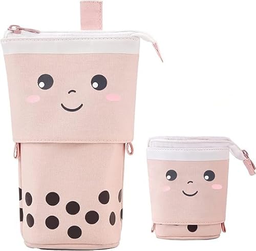 Xrten Belle boîte à Crayons Télescopique, Étui à Crayons de Dessin Animé, Trousse Télescopique 2-en-1, Fourniture Scolaire Kawaii, Couleur Rose et Point, Sac Multifonction