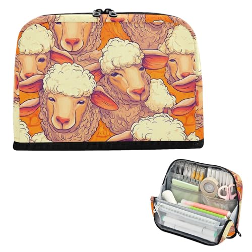 Yoogain Trousse à crayons de grande capacité - Organisateur de rangement multifonction pour fournitures scolaires d'infirmière, art dessin animé, mouton, orange et blanc