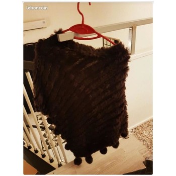Gilet Sans marque Poncho Bordeaux à capuche fourrure