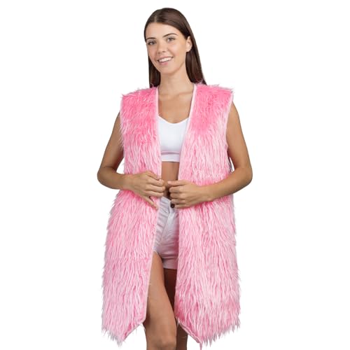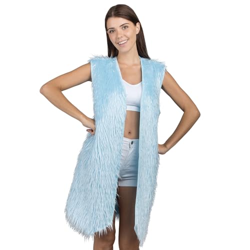 Chaks - gilet en fausse fourrure moelleuse pour femmes, long et sans manches, accessoire de tenue pour festival, carnaval, club et soirée à thème