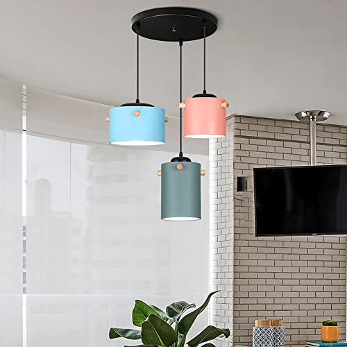 Lustre à 3 têtes avec Abat-Jour Macaron, Suspension Industrielle avec Base E26, luminaire Suspendu réglable pour Salle à Manger, Foyer, Ferme, Cadeau