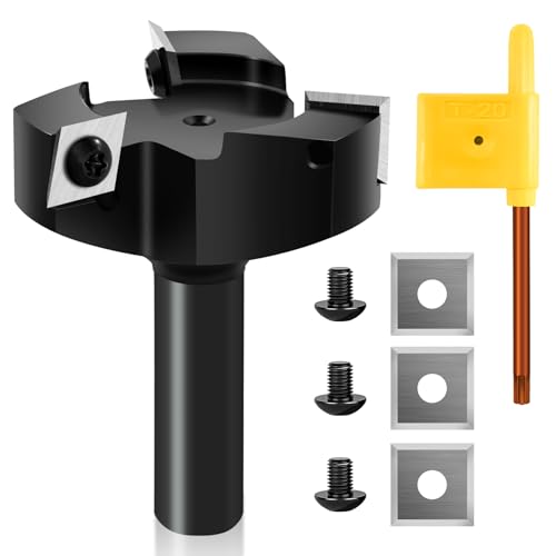 FUYUMIC Fraise à raboter Le Bois à 2 cannelures, diamètre de Coupe de 38,1 mm, Tige de 6, 8, 12 mm, Fraise à Surfacer Les Panneaux de Toit, Insert en carbure for Dalle(12mm Shank)