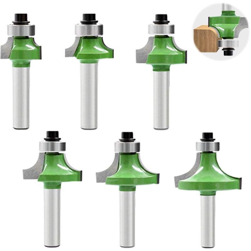 Lot de 6 Fraise Défonceuse à Bois 8 mm, Fraise Quart de Rond avec Tige 8 mm, Fraises pour Défonceuse à Bois, Fraise à Rainurer Arrondi pour le