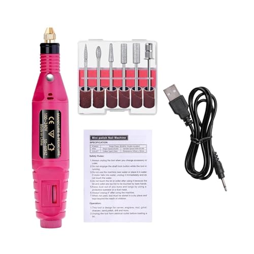 Ensemble de Ponceuse à Ongles, perceuse électrique, équipement de meulage, Fraise pour manucure et pédicure, Outils de Polissage puissants (Rose)