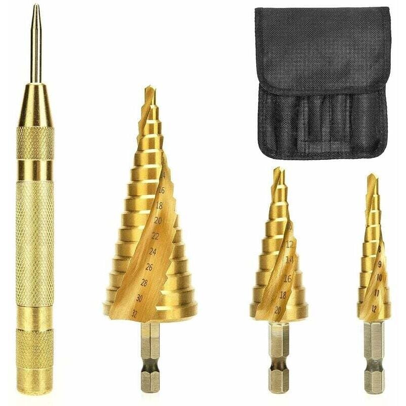 Famille - gabrielle Foret à métaux pour perceuse,Foret Etage avec Poinçon de Centre Automatique, Meche Etage Triangle Conique Titane Foret Fraise