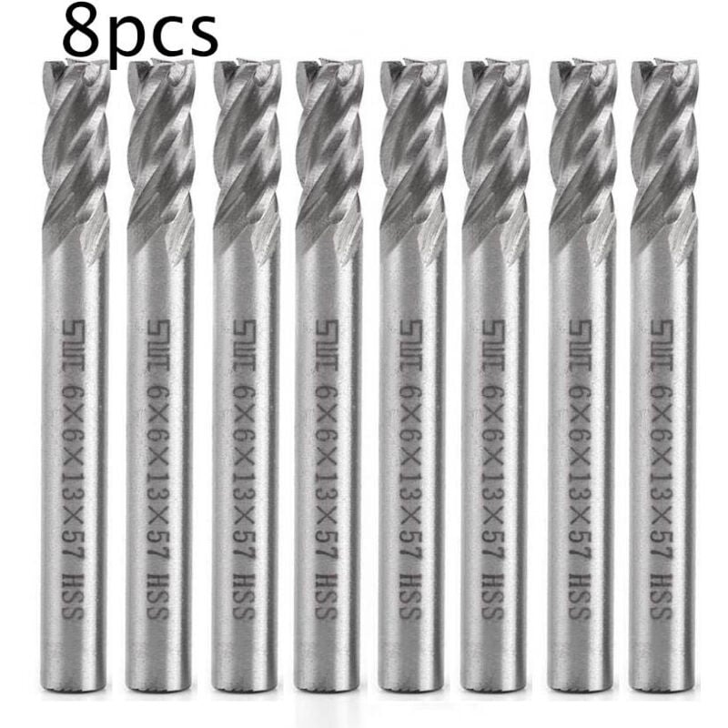 Fraise pour perceuse,Promotion, 8pcs Fraises Tours à Tige Droite 8mm hss Metal Outil de Coupe Fraise 4 Flûtes Gravure Machine à Fraiser cnc Outil