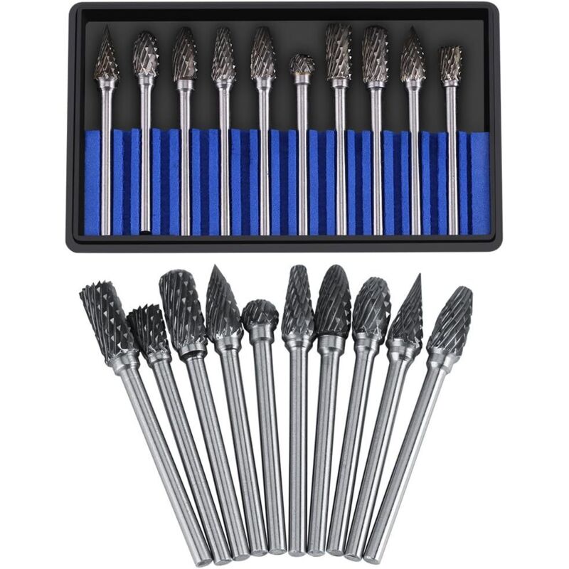 Jeu de Fraises en carbure fichiers rotatifs Acier au tungstène 10pcs diamètre tête Coupe pour Fraise 3mm Tige 6mm la perceuse à découper découpage