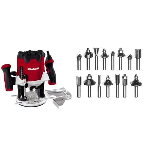 Einhell Défonceuse électrique TE-RO 1255 (1200 W, Longueur du câble d'alimentation : 3 m, Revêtement SoftGrip, Livré avec accessoires) + Kit de 15 fraises