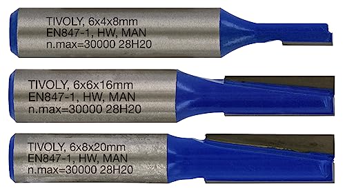 Tivoly - Coffret de 6 Fraises Défonceuse Queue 8mm - Lame Carbure Affutée Diamant Très Résistante, Ultra Tranchante - Haute Précision - Queue 8mm - Conforme norme EN847-1