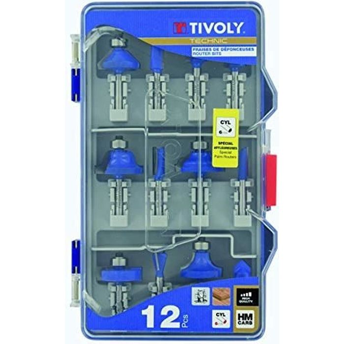 Fraises de défonceuse - TIVOLY - X12 - Lame carbure - Queue 6mm - Coffret 12 pièces