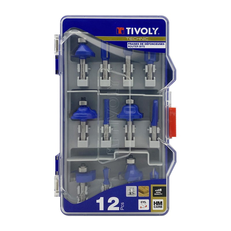 Tivoly Jeu de fraises pour défonceuse forme - 8 mm 12 pièces