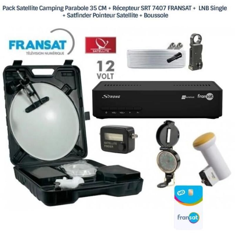 Pack Satellite Camping - FRANSAT - SRT 7407 - Parabole 35 CM - LNB Single - Kit Complet