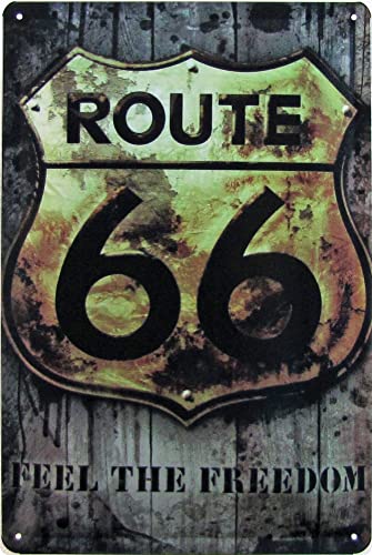 Plaque en tôle bombée 20 x 30 cm Route 66 Feel The Freedom America Vintage Décoration Cadeau Panneau