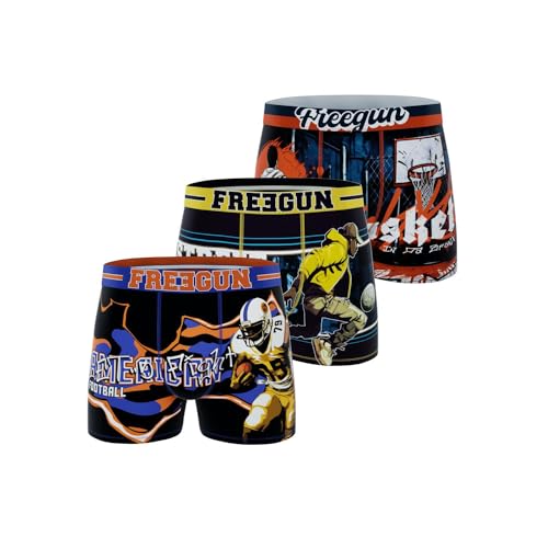 FREEGUN Pack Surprise Boxer Enfant sans Déformation, Modèle Aléatoire, Ajustement Parfait, Résistant et Multi-Sport (Lot de 3), Bleu Taille 14 ans/16 Ans