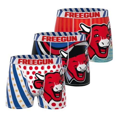 FREEGUN Boxer Homme Vache Qui Rit, Caleçon Homme Original et Authentique (Lot de 4), Rouge Taille L
