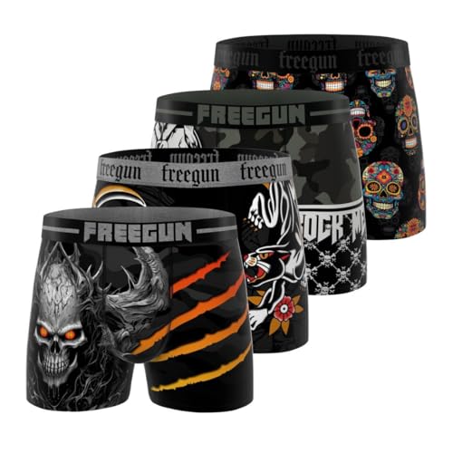 FREEGUN Boxer Homme, Caleçon Homme Skull Summer, Doux & Respirant (Lot de 4), Noir Taille M