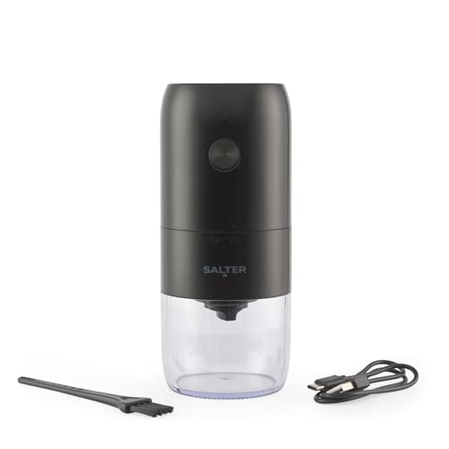 Moulin à Café Rechargeable Salter – 30g de Grains & 35g de Poudre, Fonctionnement à Une Touche, Compact/Portable, Meule en Céramique, pour French Press, Filtre, Espresso, Noir