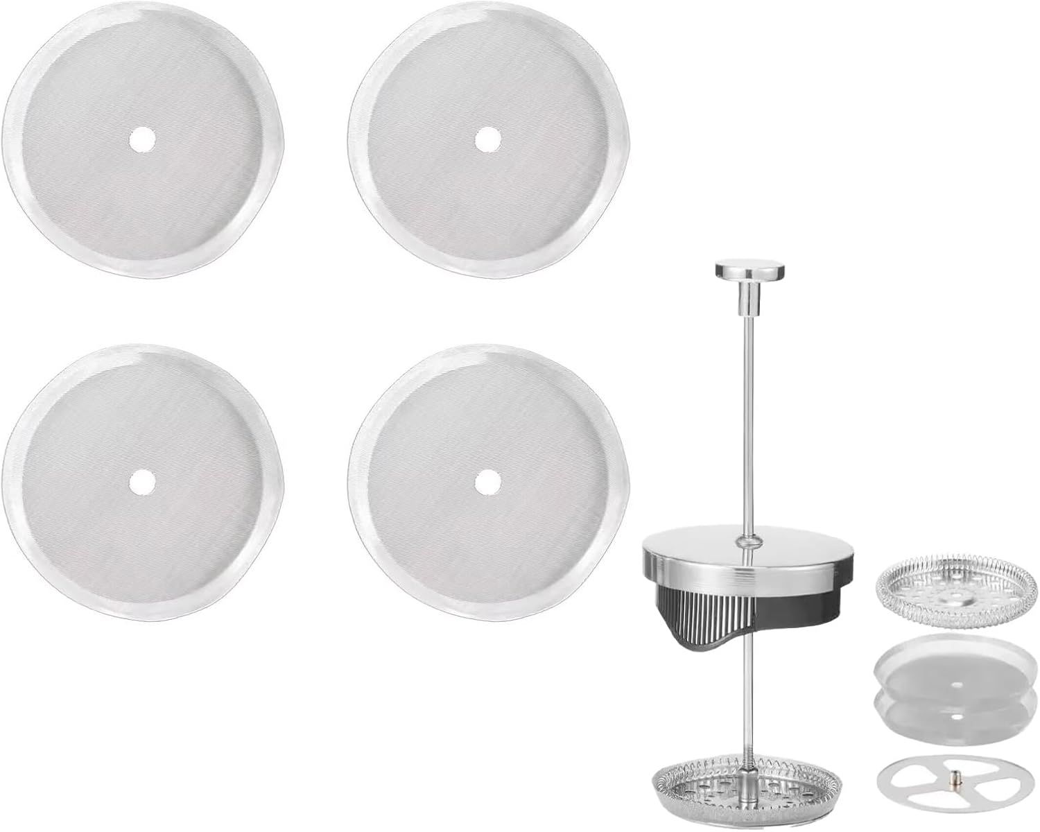 4 Filtres French Press Réutilisables En Acier Inoxydable,Lot Compatible Cafetières À Piston,Pour La Plupart Des Marques