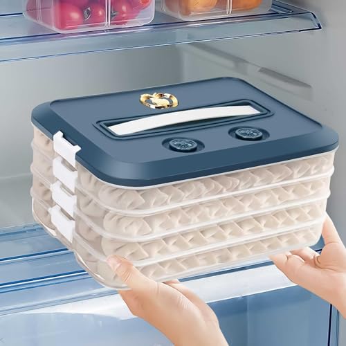 Yallmie 4 Couches Boîte a Charcuterie, 30,5x23x7,5cm Boite Jambon Conservation Frigo avec Couvercle et Minuteur, Empilable Boite a Fromage pour Frigo pour Raviolis, Boulettes, Biscuits, Desserts