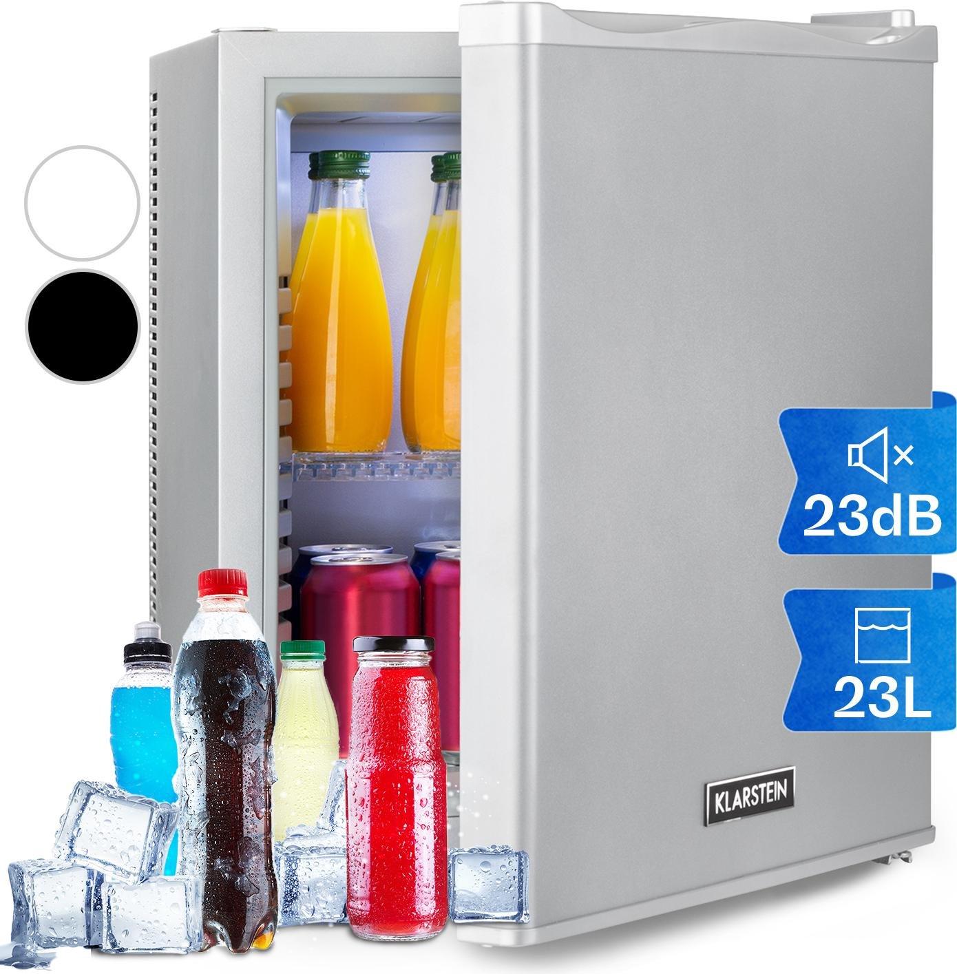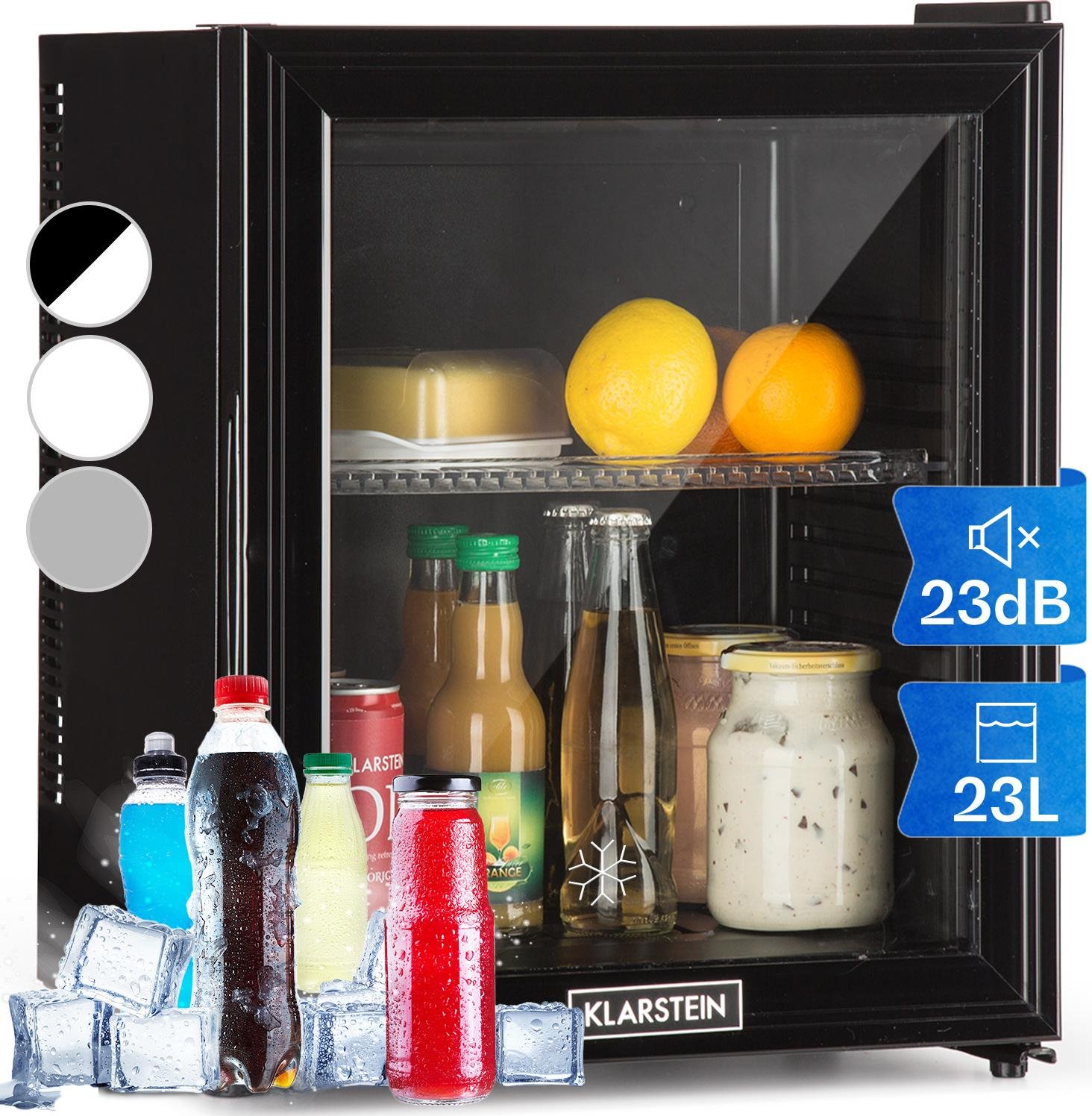 KLARSTEIN Petit Frigo de Chambre de 23L pour Snacks et Boissons, Top Silencieux, Mini Bar, avec Étagères Réglables Camping, Cosmetique, 5-15°C