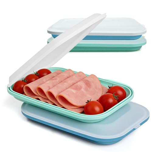 lompyeu 2 Pièces Boîtes a Charcuterie Fresh 23.5x15x3.45cm,Silicone Boite Jambon Conservation Frigo,Empilable,Passe au Congélateur, Micro-ondes et Lave-vaisselles | Sans BPA (Bleu-vert)