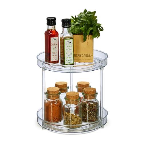 Relaxdays Organiseur Rotatif, 2 Niveaux, diamètre de 23,5 cm, Rangement frigo, cosmétiques & épices, Rond, Transparent