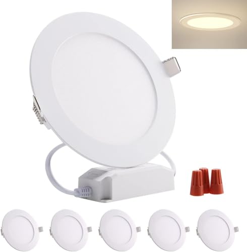 Greenclick 5x 9W Panneau LED Tache ronde blanche Dimmable Downlight, Projecteur encastré, Extrêmement plat, 720lm Remplacer Halogène 80W (4000k, Panneau rond 9w) [Classe énergétique A+]