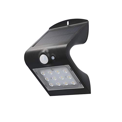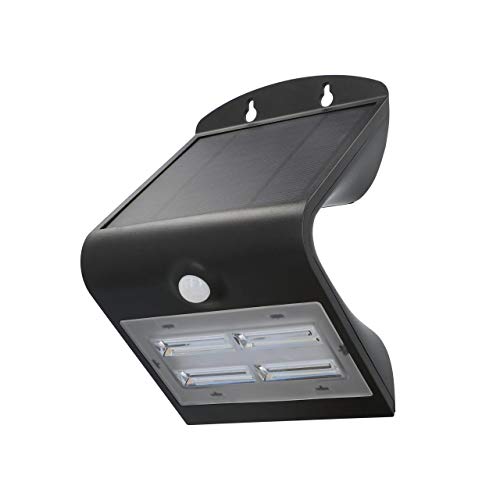 UNITEC Applique murale solaire LED avec détecteur de mouvement 120° | 1,5 W | 220 lumens | 4000 K | Lampe solaire d'extérieur | Protection contre les éclaboussures IP65 | Noir | Classe énergétique A++
