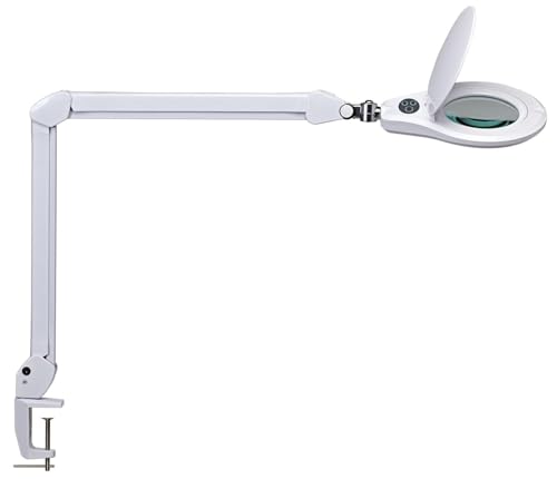 Lampe Loupe LED MAULsource, Blanc avec Pied de Serrage, Intensité Variable, 1, Grossissement 75 x, 2140 Lux, Lumière Du Jour [Classe Énergétique A]