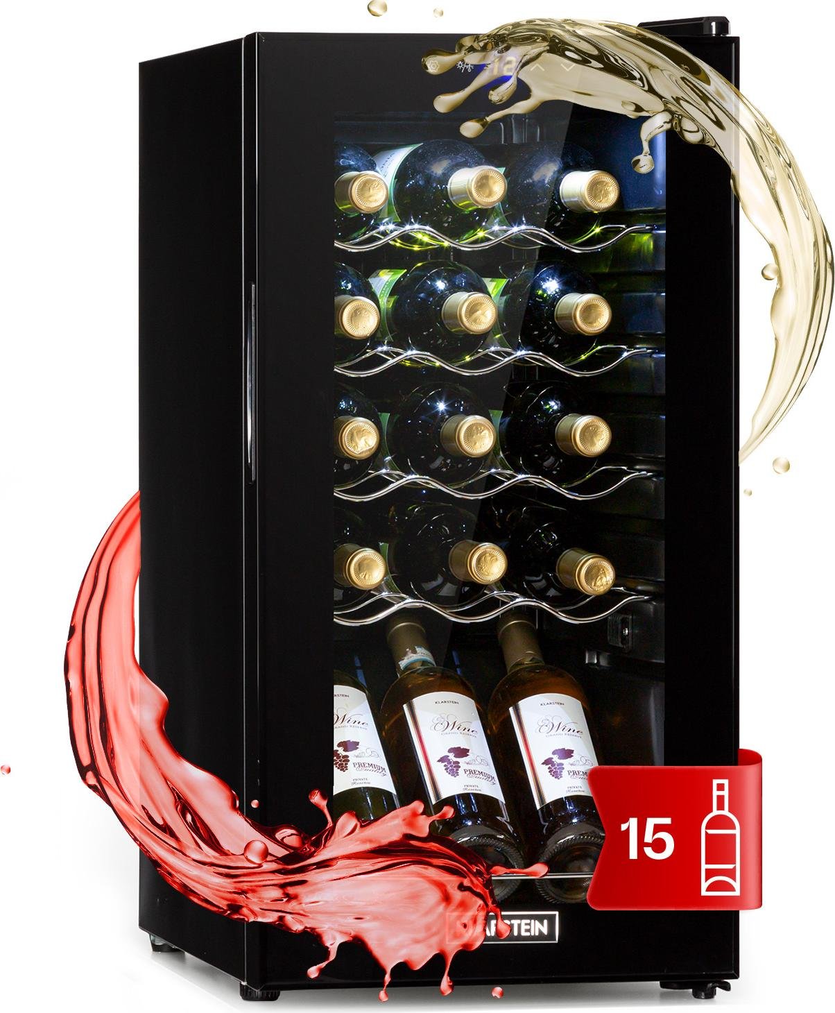 Klarstein Cave a Vin sur Pieds, Caves à Vin de 44L avec une Porte en Verre, Cave a Vins à Zone Unique, Bar Intérieur/Extérieur, Frigo vin, Cave a Vin de Vieillissement, Petite Cave à Vin 15 Bouteilles