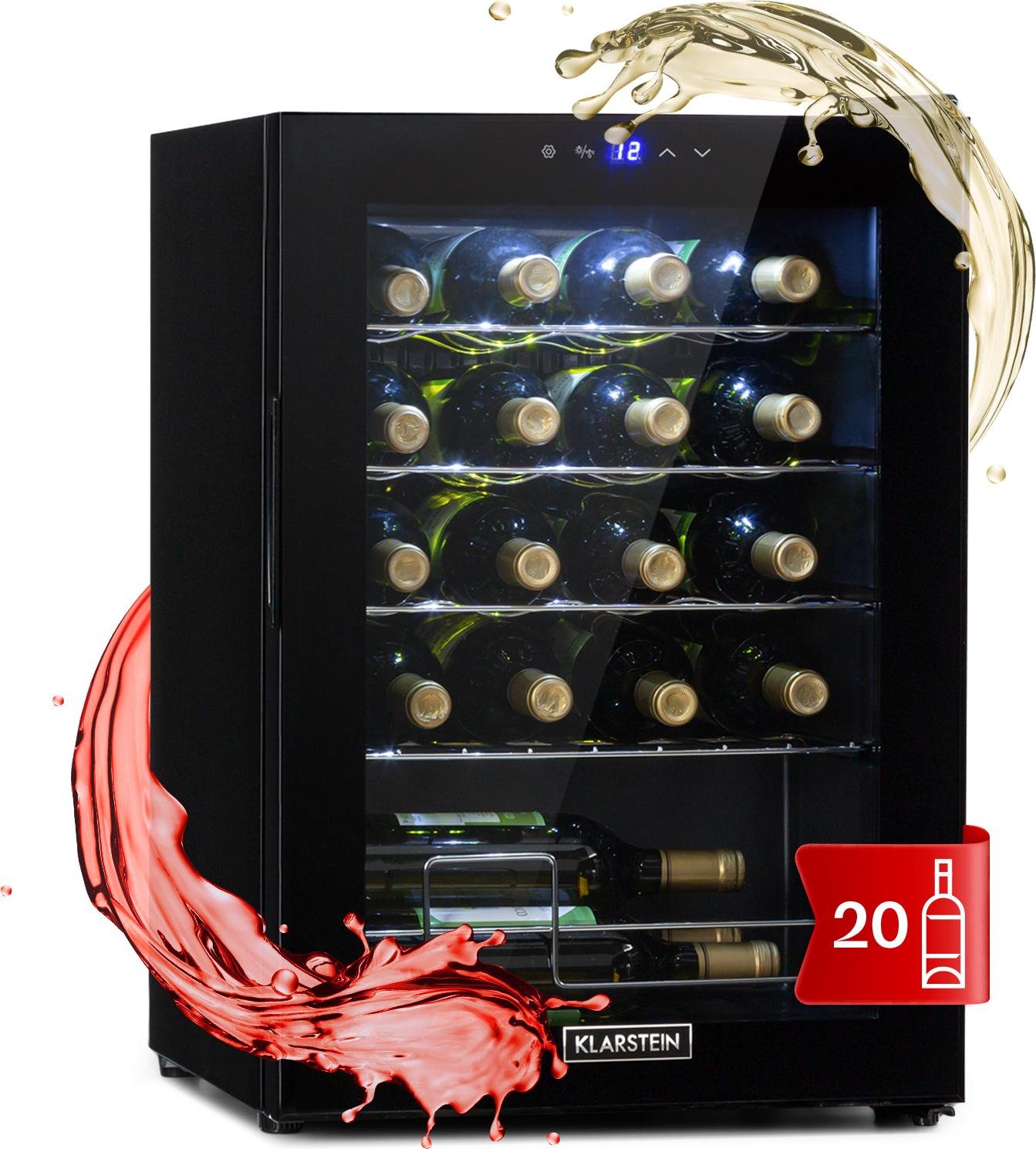 Klarstein Cave a Vin sur Pieds, Caves à Vin de 53L avec une Porte en Verre, Cave a Vins à Zone Unique, Bar Intérieur/Extérieur, Frigo vin, Cave a Vin de Vieillissement, Petite Cave à Vin 20 Bouteilles