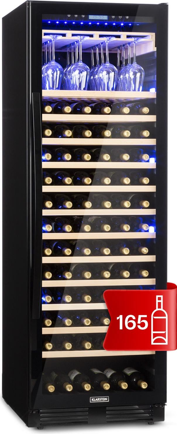 Klarstein Cave a Vin Encastrable, Caves à Vin de 433L avec une Porte en Verre, Cave a Vins à Zone Unique, Bar Intérieur/Extérieur, Frigo Vin, Cave a Vin de Vieillissement, Cave à Vin 165 Bouteilles