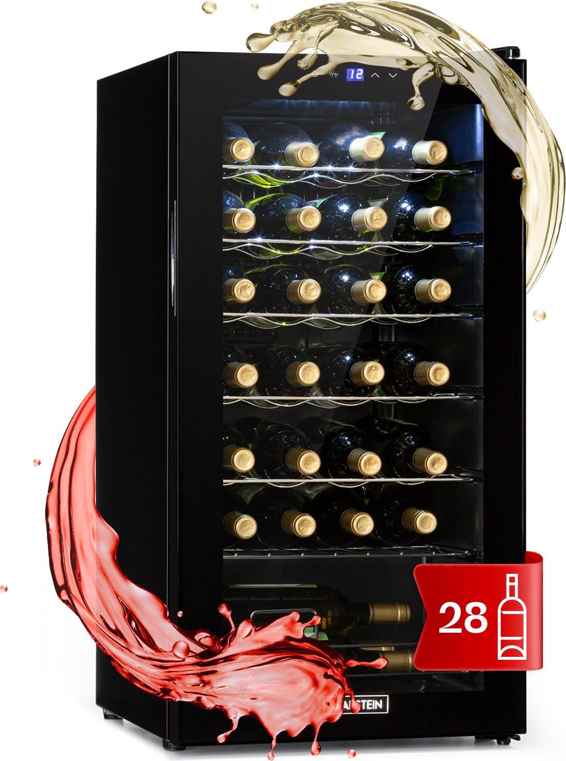 Klarstein Cave a Vin sur Pieds, Caves à Vin de 74L avec une Porte en Verre, Cave a Vins à Zone Unique, Bar Intérieur/Extérieur, Frigo vin, Cave a Vin de Vieillissement, Petite Cave à Vin 28 Bouteilles