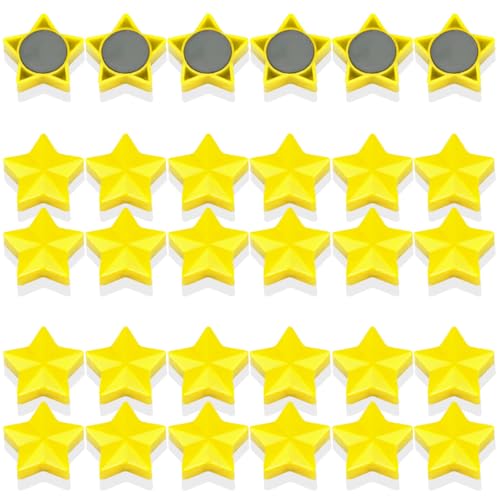 PYJLBX Aimant Frigo, 30PCS Aimant Puissant Aimants Tableau Magnétique Magnet Frigo Magnet Petit Aimant Tableau Blanc Mini Aimant Magnets Decoratif, pour Tableau Magnetique, Calendrier (Étoile, Jaune)