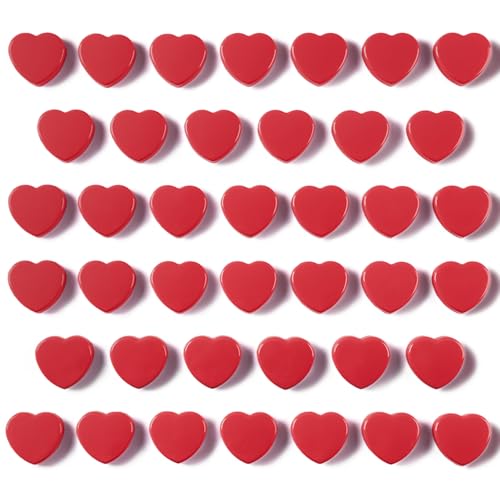 DUJEQM Aimant Frigo, Colorés Magnetic Magnet Frigo, Petit Rond Colorés Décoratifs Aimants pour Tableau Blanc, Réfrigérateur, Bureau (Red-HeartMagnets-40pcs)