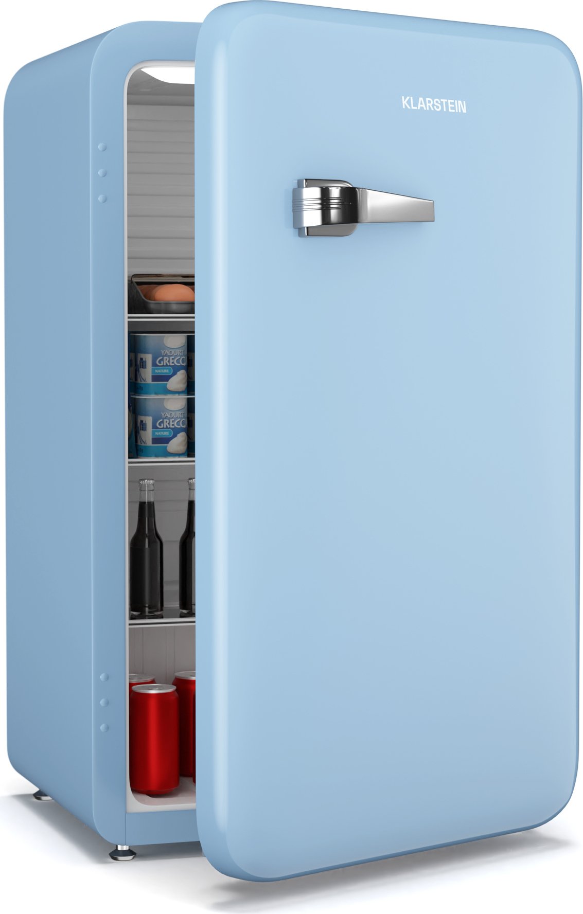 Klarstein Audrey Evo 90L Mini Frigo - Rétro, Silencieux 40 dB, Thermostat Mécanique, Porte Réversible, LED, Petit Frigo pour Chambres & Bureaux, Bleu