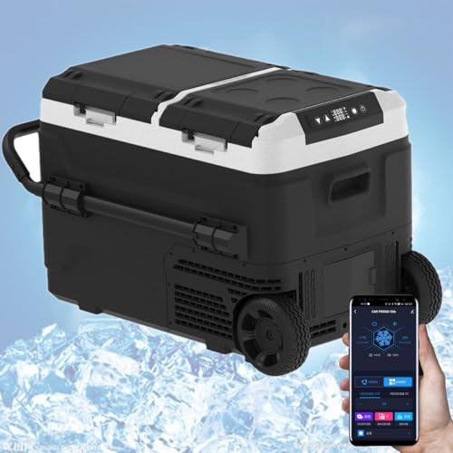 Nicvrea Réfrigérateur Portable, Frigo de Voiture, Glacière sur roulettes à Zone Double, Température Réglable -20 °C à 20 °C, pour Camion Bateau Maison Camping Extérieur 50L