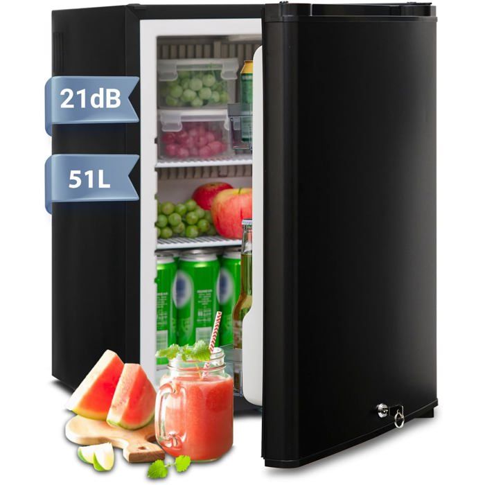Smad Frigo12V 220V-Frigo Camping car-avec Serrure-51L-0-10℃-Réfrigérateur Silencieux-pour Chambre Camping Camion Fourgon Van -Noir