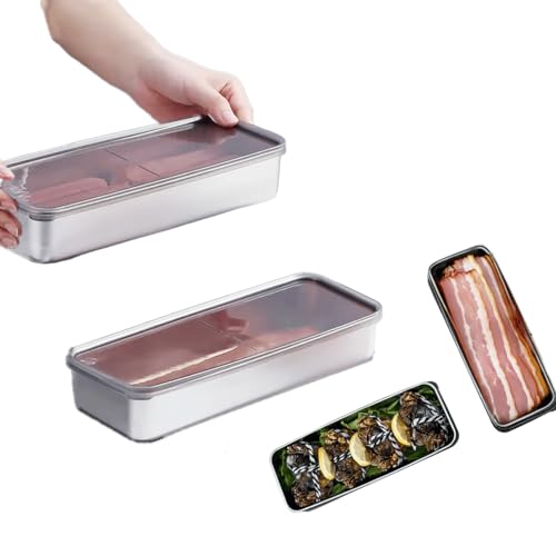 2 Pièces Boîte à Jambon pour Refrigerateur, 19,7x14x4cm Boîtes a Charcuterie en Acier Inoxydable avec Couvercle, Empilable Boite a Fromage pour Frigo, Boite Conservation Jambon pour Viande, Bacon