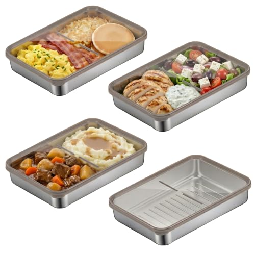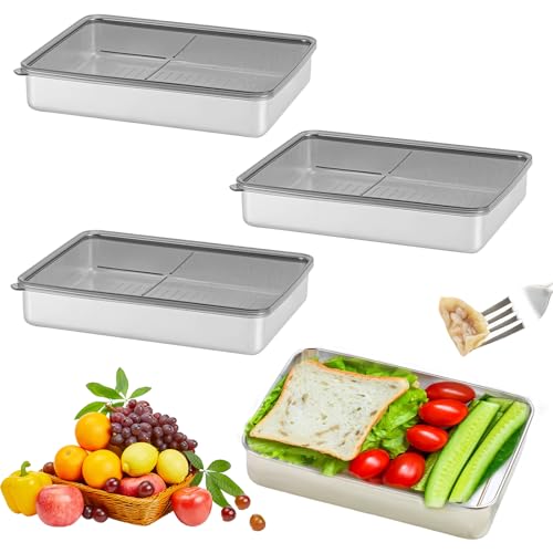 Xyvor 3 Pièces Récipients à Charcuterie, 25.5x20x5 cm Boite a Jambon pour Refrigerateur, Boîtes Alimentaires en Inox, Boite Rangement Frigo avec Couvercle, pour Fromage, Viande, Fruits