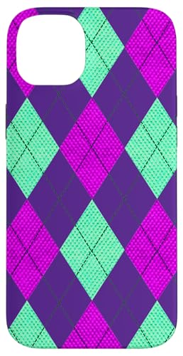 Argyle Preppy Rétro Vintage Années 80-50 Magenta et Vert Clair Coque pour iPhone 15 Plus