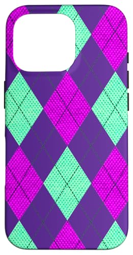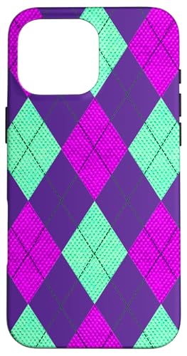 Argyle Preppy Rétro Vintage Années 80-50 Magenta et Vert Clair Coque pour iPhone 16 Pro Max
