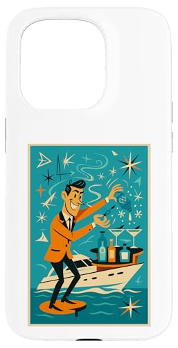 Art Graphique Vintage rétro années 50 Bateau et Cocktails Coque pour iPhone 15 Pro